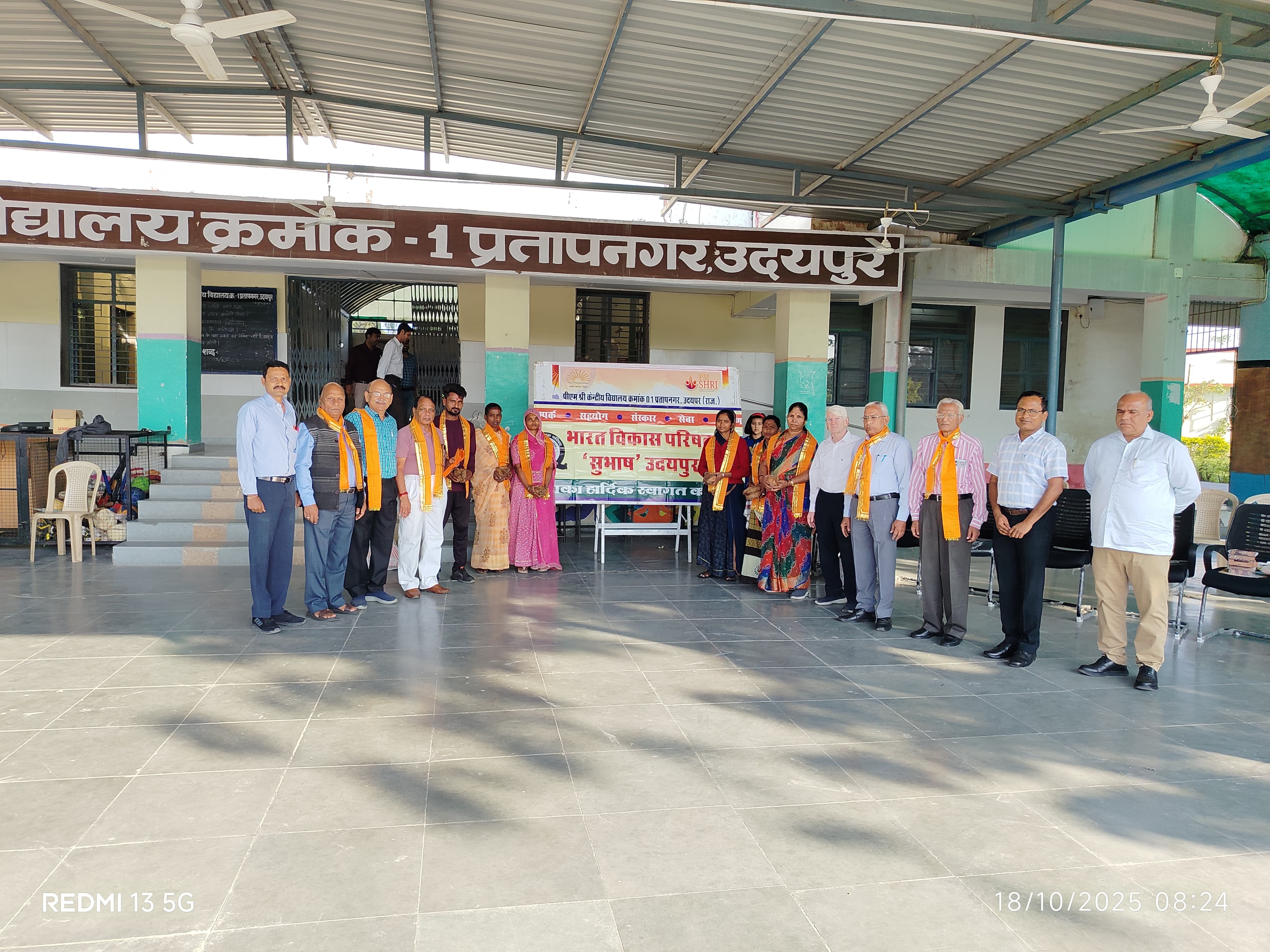Udaipur.The reverence for the Guru and the respect for the disciple — this is the soul of Indian culture. With this spirit, Bharat Vikas Parishad “Subhash” branch organized a grand Guru Vandana and Student Felicitation Program at PM Shri Kendriya Vidyalaya No.1, Pratap Nagar.